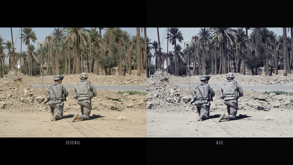 Give your footage that raw, visceral, bleak and hopeless look, that will help to emotionally connect your audience and allow them to feel more deeply; the pain, suffering and brutality of war.
